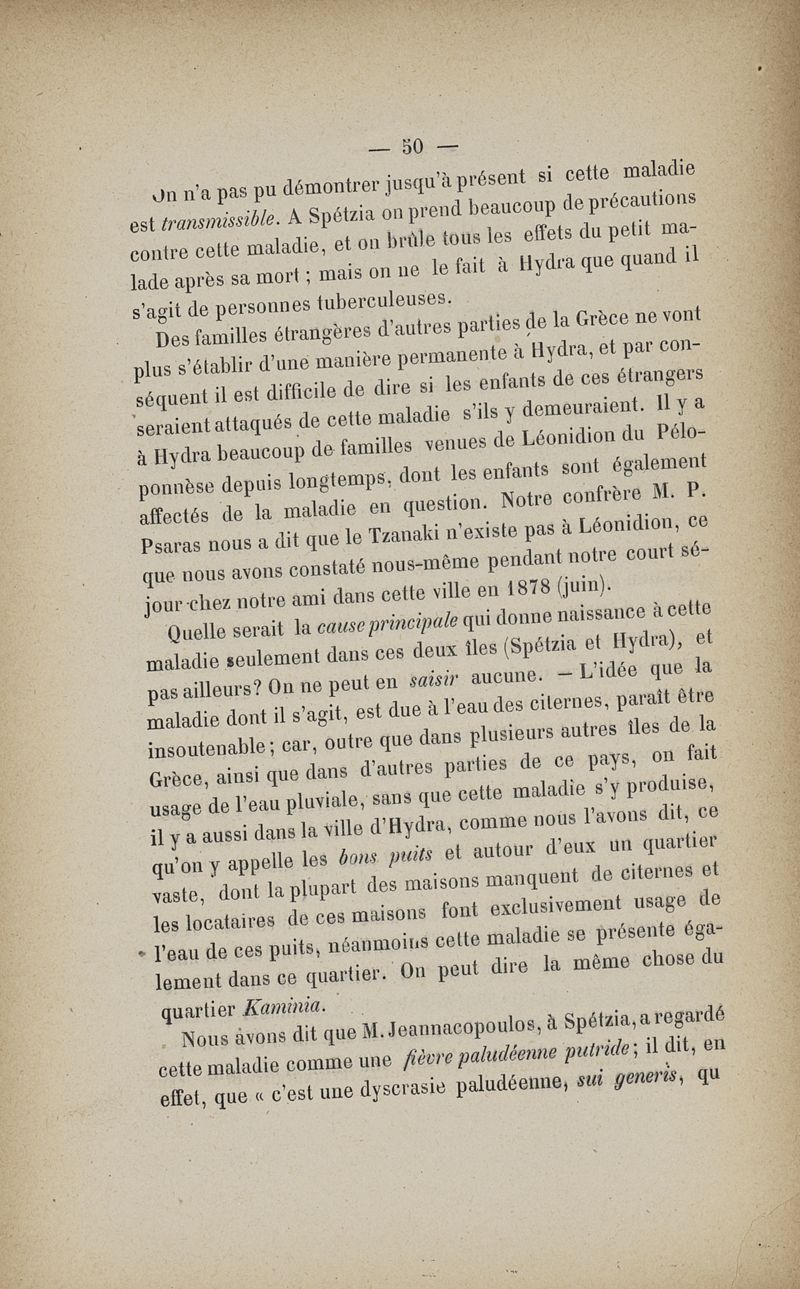 De l'île d'Hydra (Grèce) au point de vue médical, et particulièrement du tzanaki, maladie spéciale de l'enfance, et des maladies des plongeurs