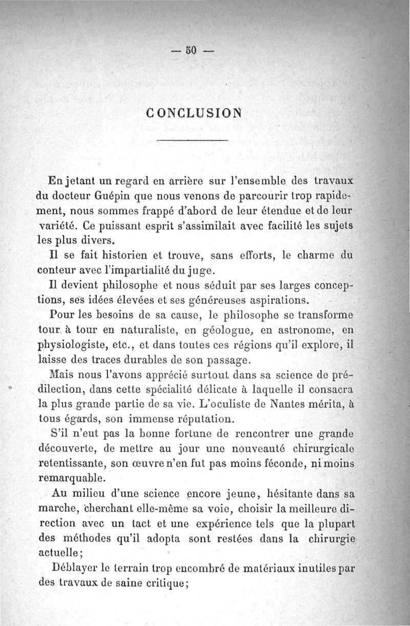 Le docteur Guépin, oculiste, philosophe, historien. Analyse de ses travaux