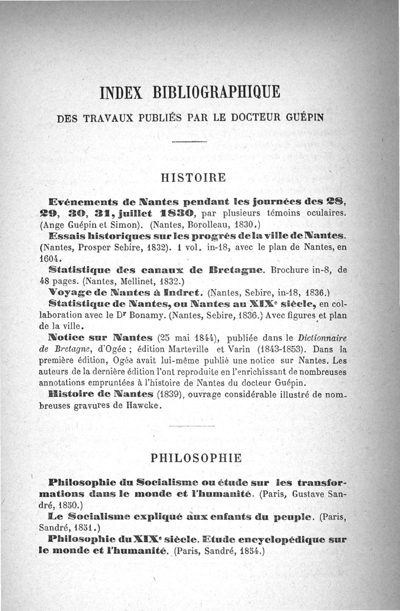 Le docteur Guépin, oculiste, philosophe, historien. Analyse de ses travaux