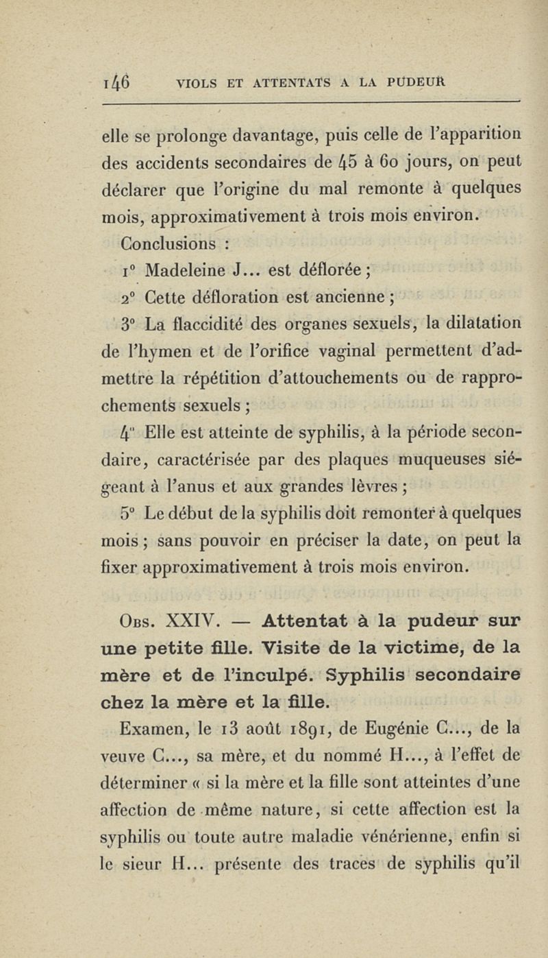 Notes et observations de médecine légale : attentats aux moeurs