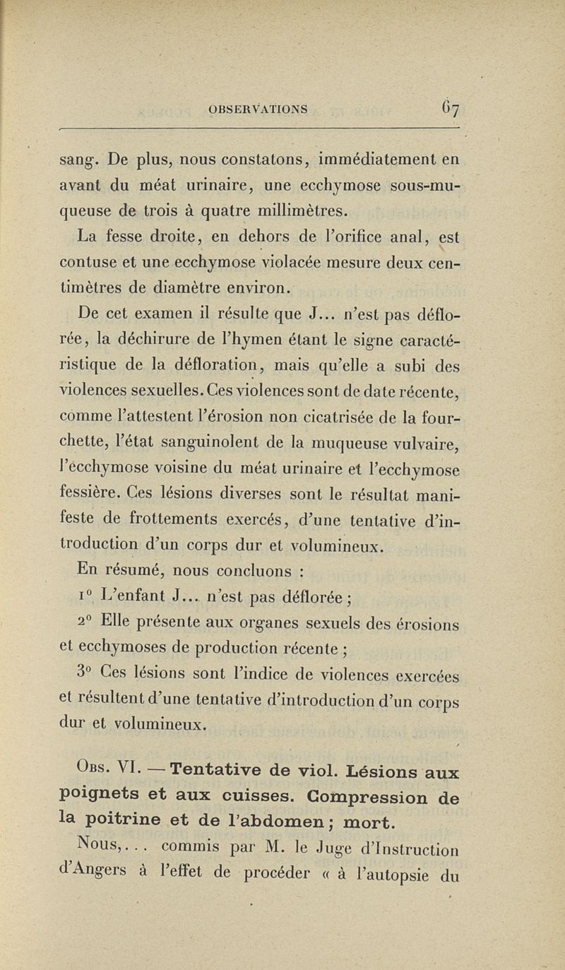 Notes et observations de médecine légale : attentats aux moeurs