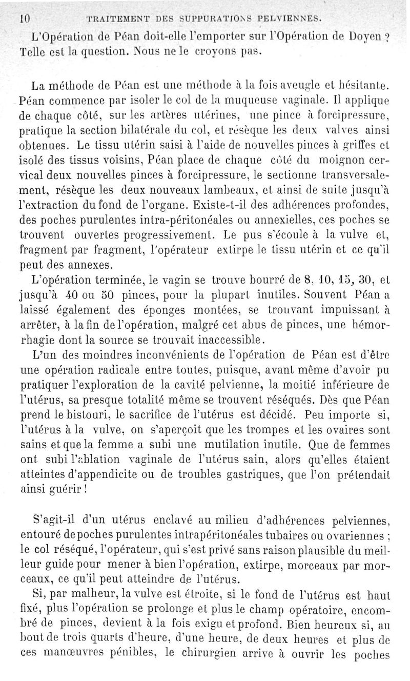 Traitement des suppurations pelviennes