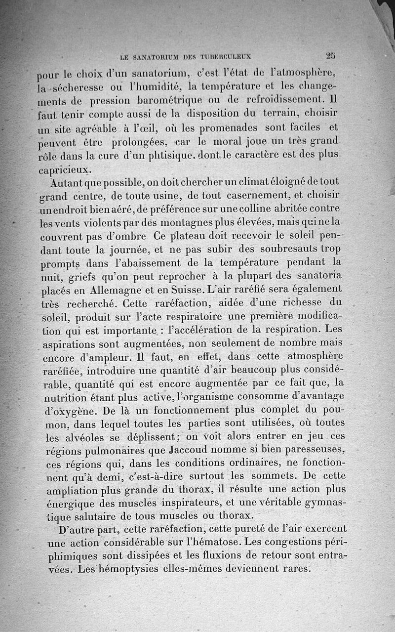 Étude climatologique et thérapeutique. Le Sanatorium des tuberculeux