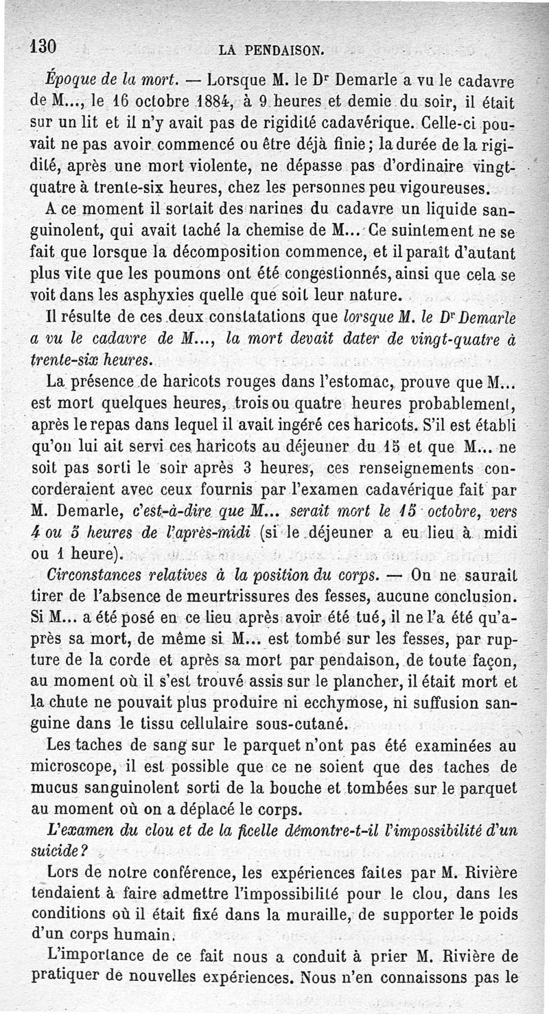La pendaison, la strangulation, la suffocation, la submersion