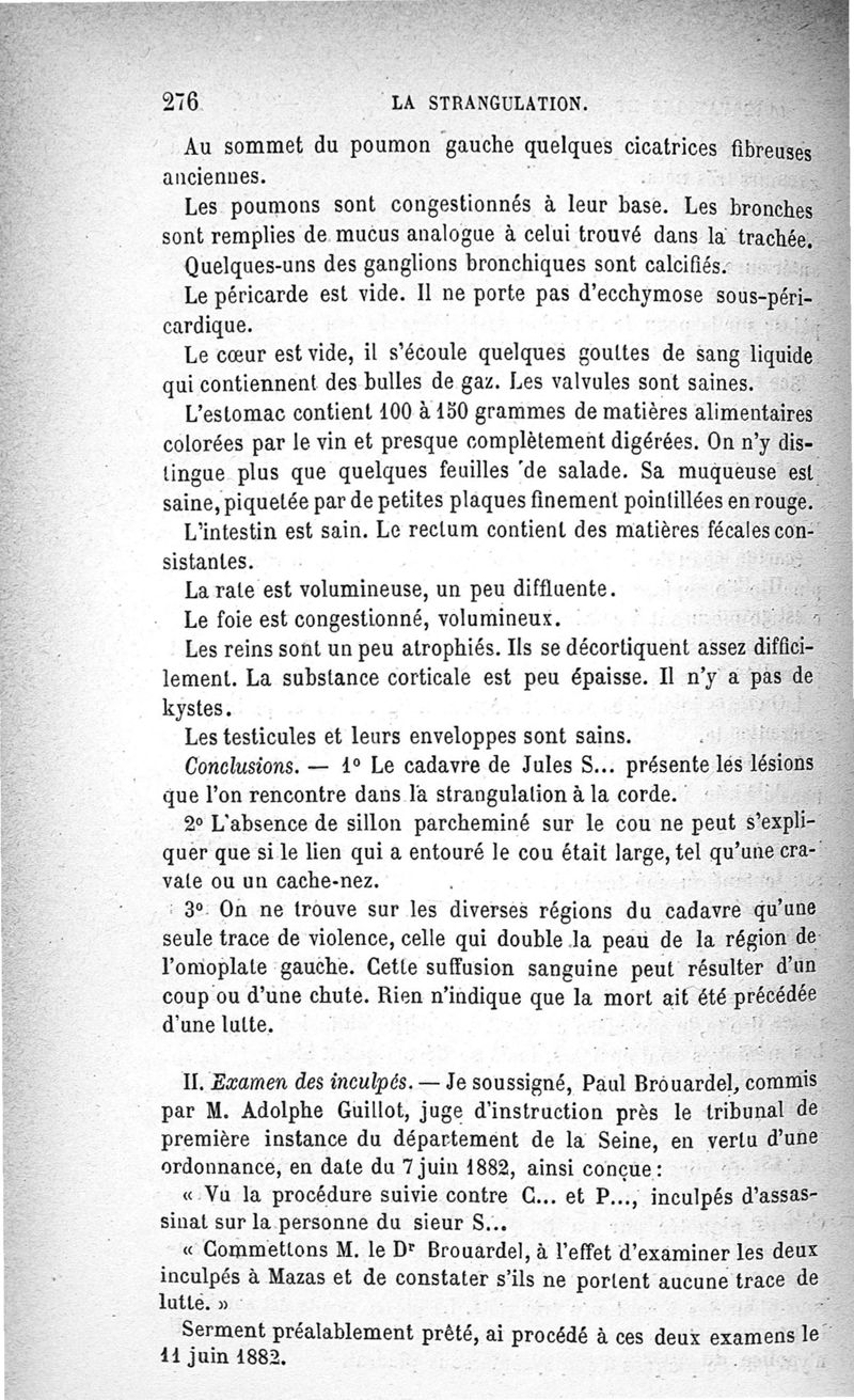 La pendaison, la strangulation, la suffocation, la submersion