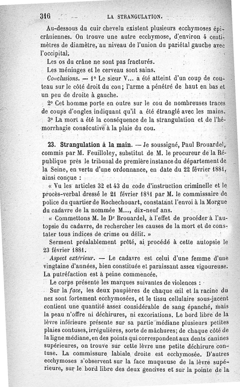 La pendaison, la strangulation, la suffocation, la submersion