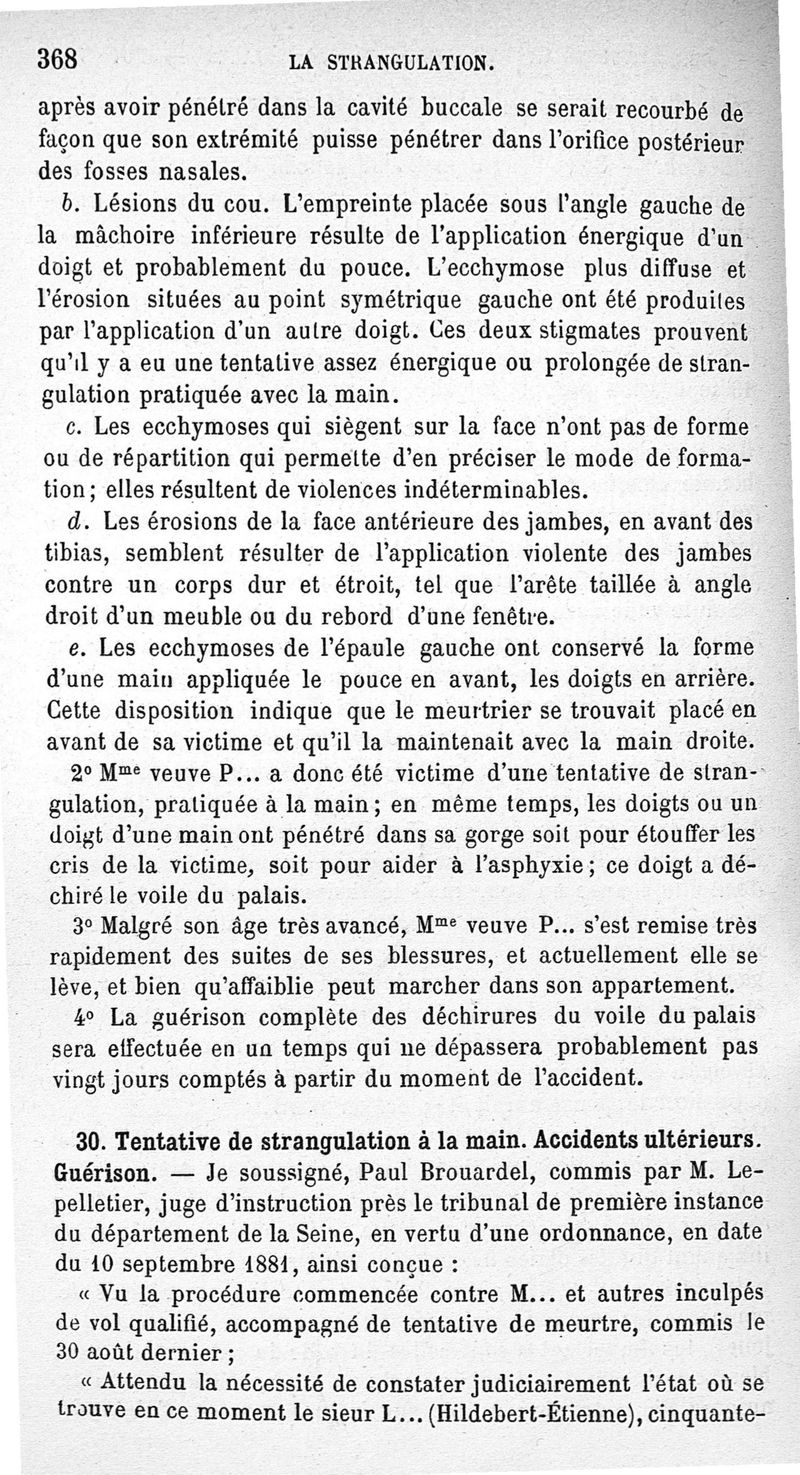 La pendaison, la strangulation, la suffocation, la submersion