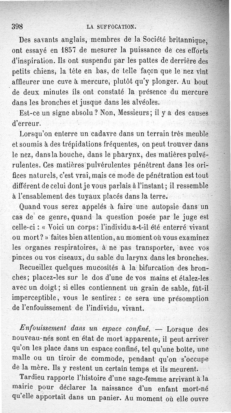 La pendaison, la strangulation, la suffocation, la submersion