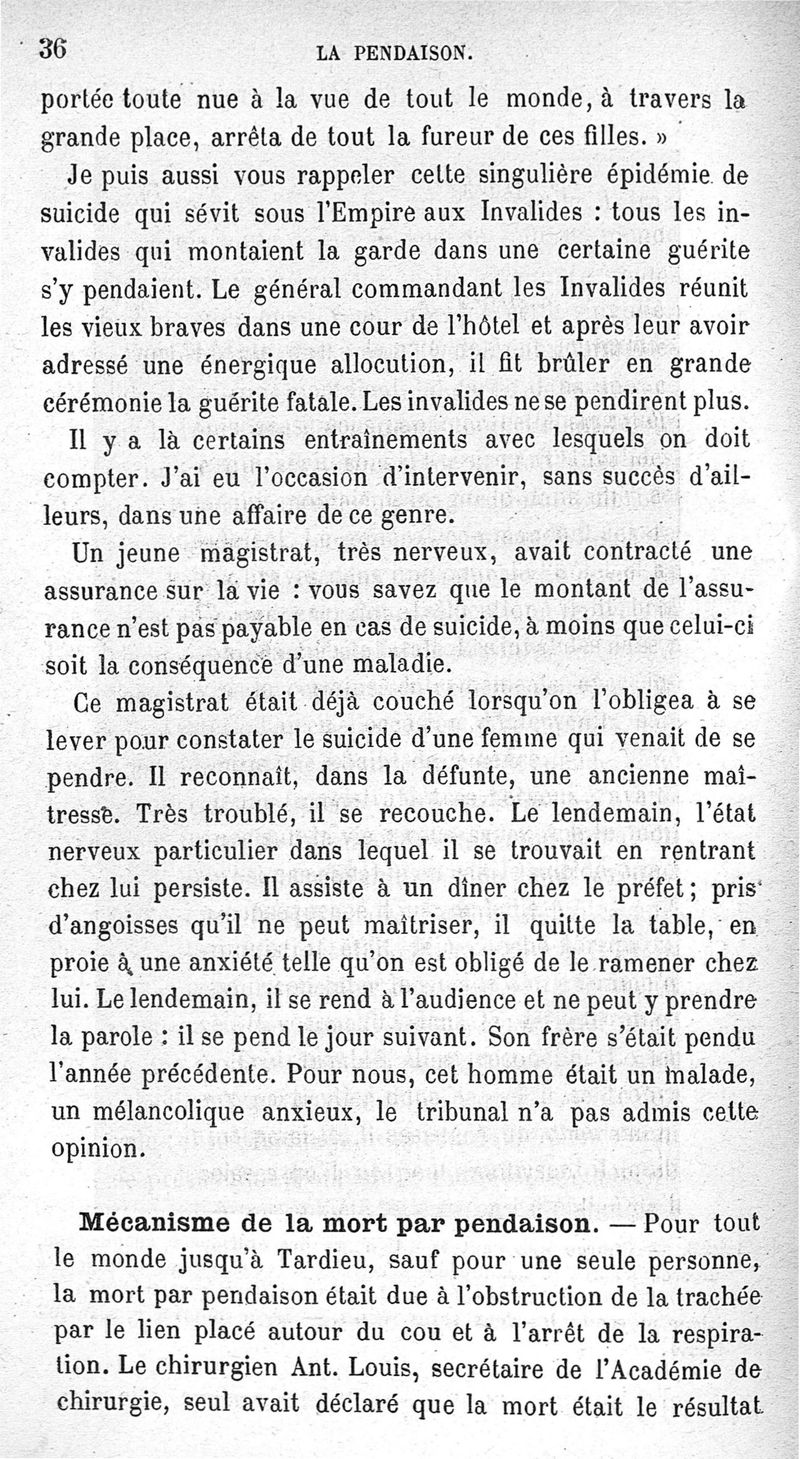 La pendaison, la strangulation, la suffocation, la submersion