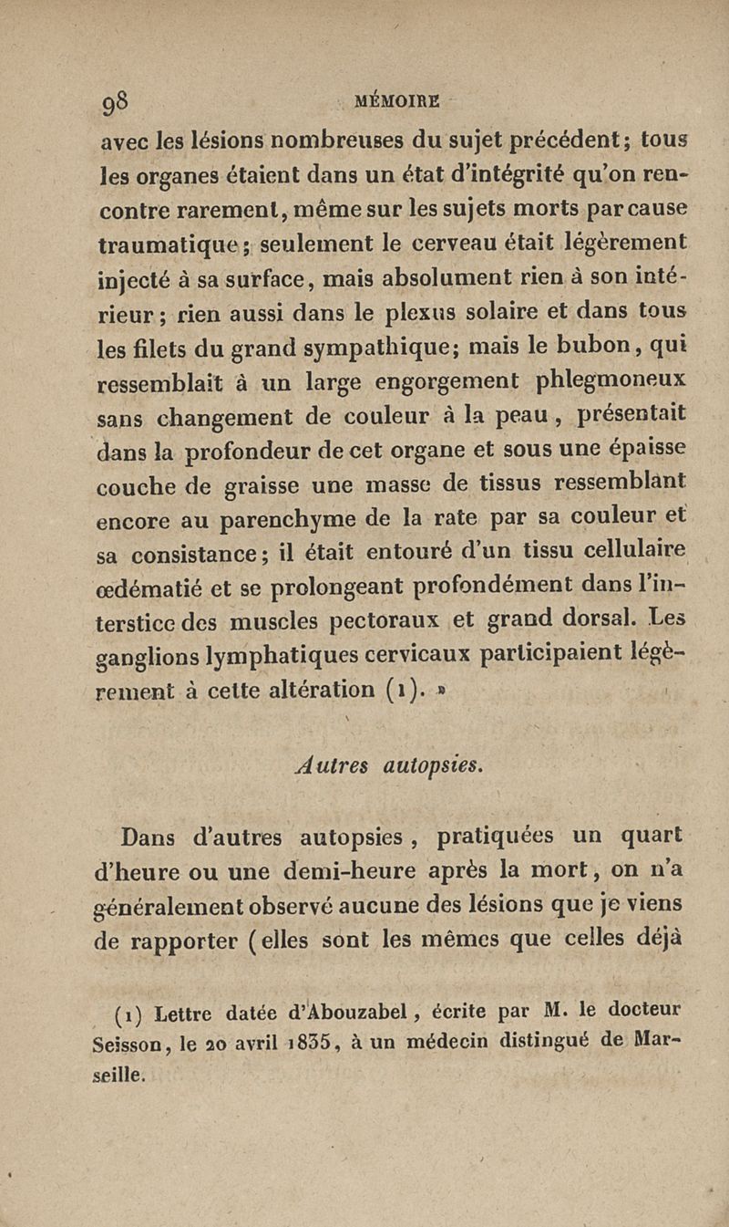Mémoire sur la peste qui a régné épidémiquement à Constantinople en 1834 et sur sa non-contagion, suivi de quelques réflexions sur les quarantaines et les lazarets