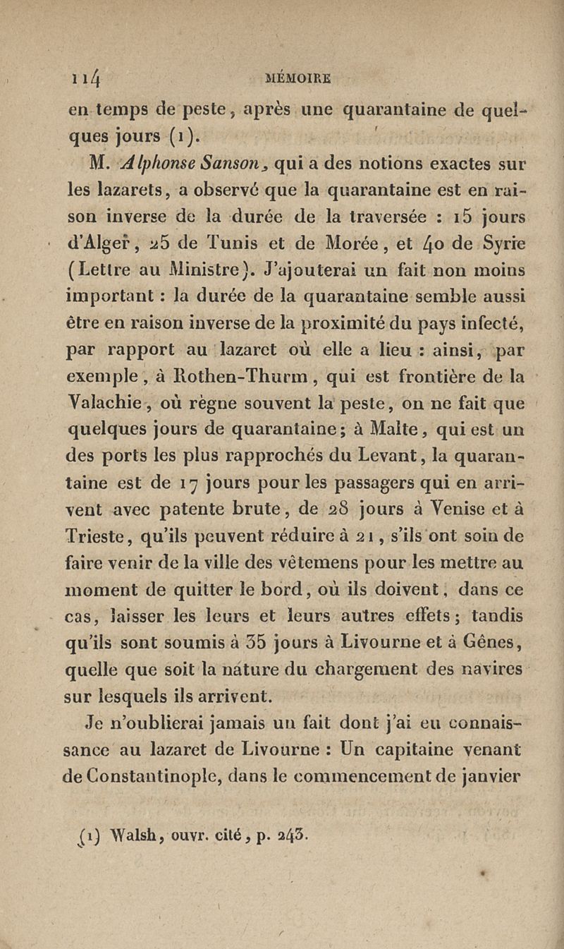 Mémoire sur la peste qui a régné épidémiquement à Constantinople en 1834 et sur sa non-contagion, suivi de quelques réflexions sur les quarantaines et les lazarets