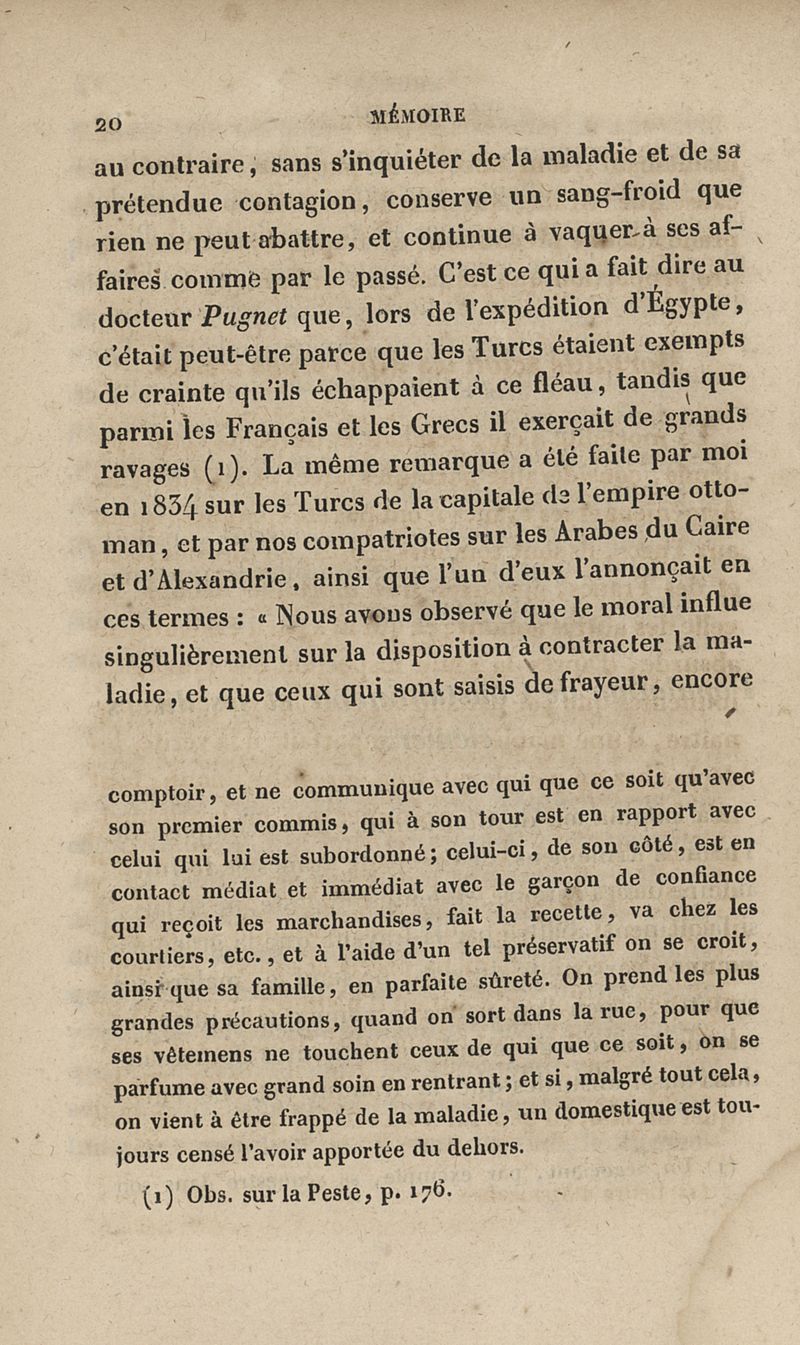 Mémoire sur la peste qui a régné épidémiquement à Constantinople en 1834 et sur sa non-contagion, suivi de quelques réflexions sur les quarantaines et les lazarets