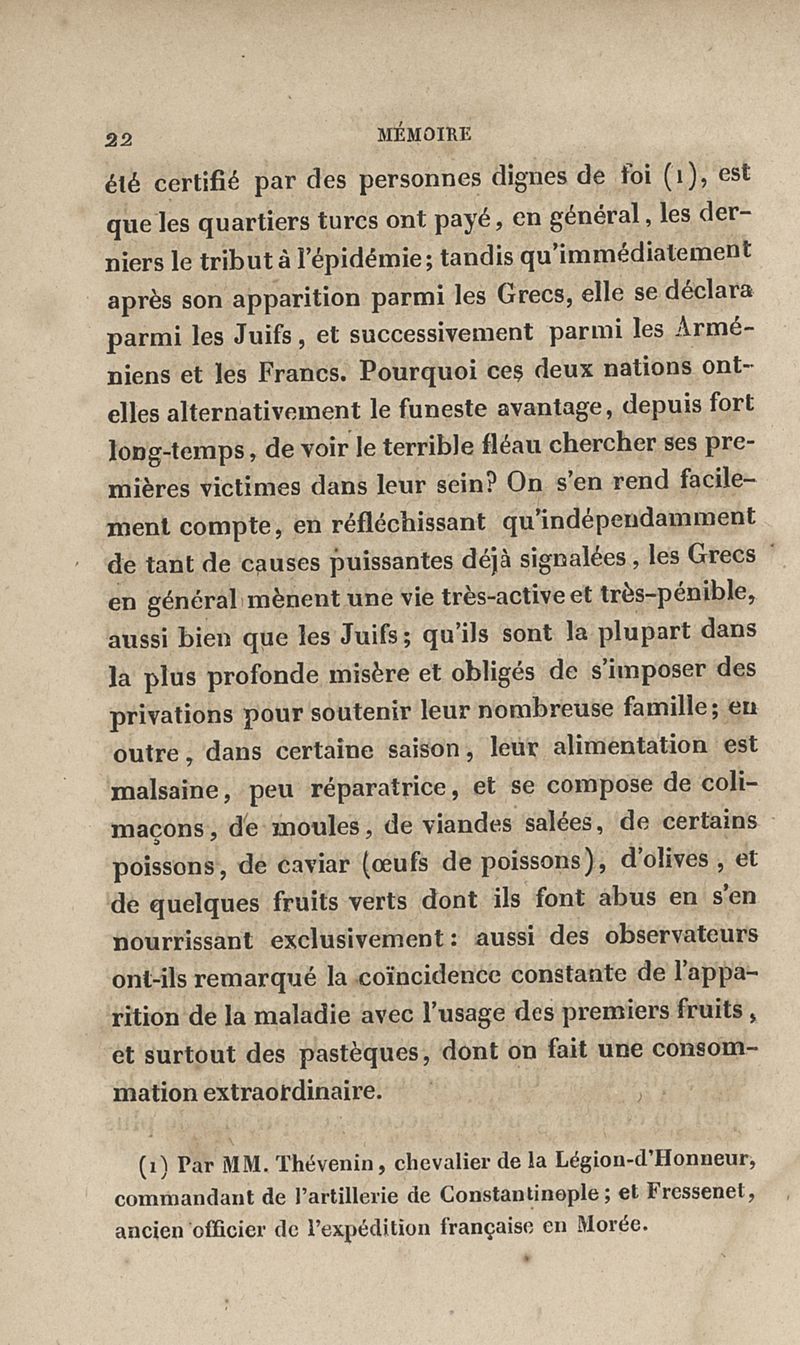 Mémoire sur la peste qui a régné épidémiquement à Constantinople en 1834 et sur sa non-contagion, suivi de quelques réflexions sur les quarantaines et les lazarets