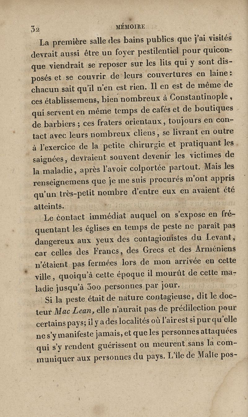 Mémoire sur la peste qui a régné épidémiquement à Constantinople en 1834 et sur sa non-contagion, suivi de quelques réflexions sur les quarantaines et les lazarets