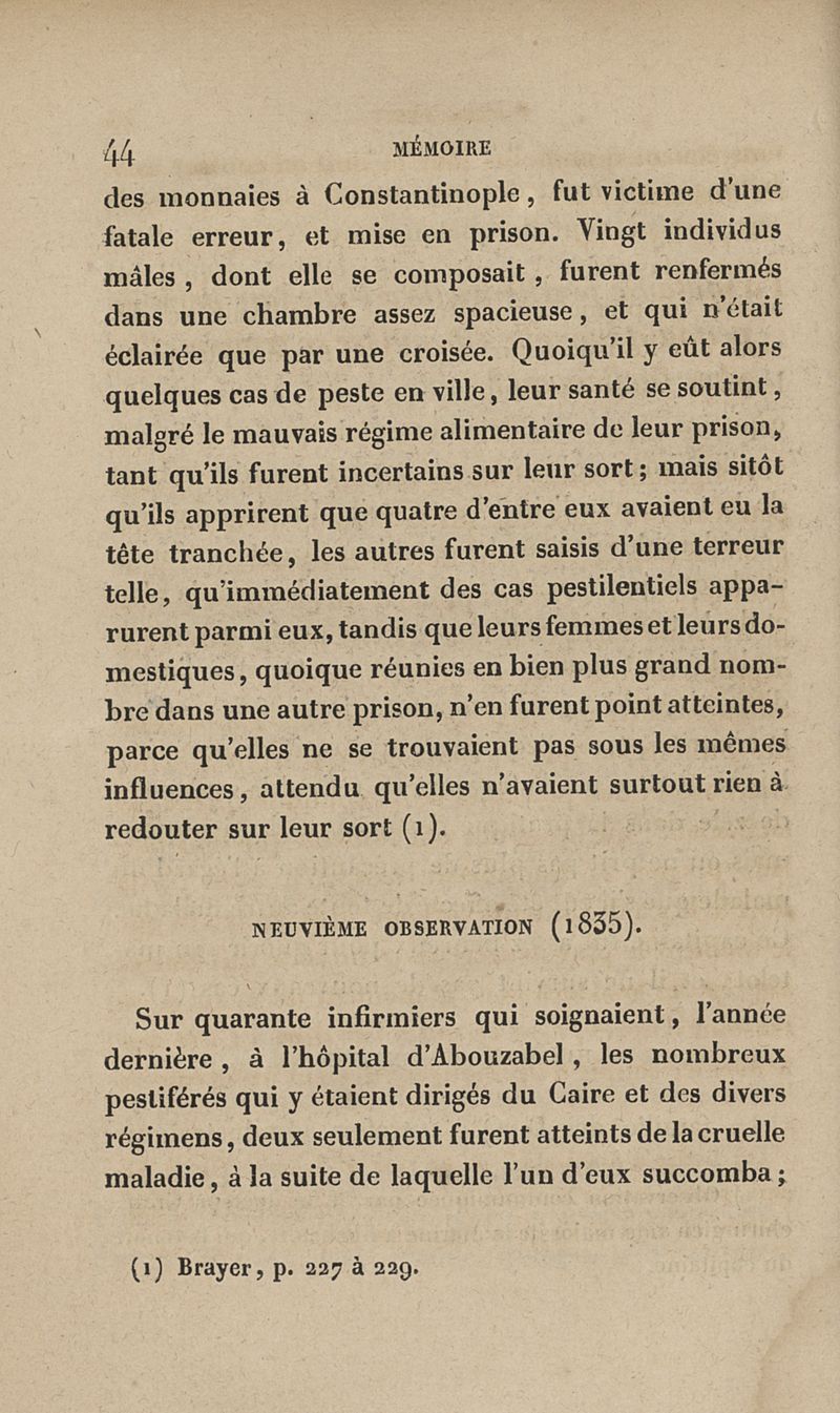 Mémoire sur la peste qui a régné épidémiquement à Constantinople en 1834 et sur sa non-contagion, suivi de quelques réflexions sur les quarantaines et les lazarets