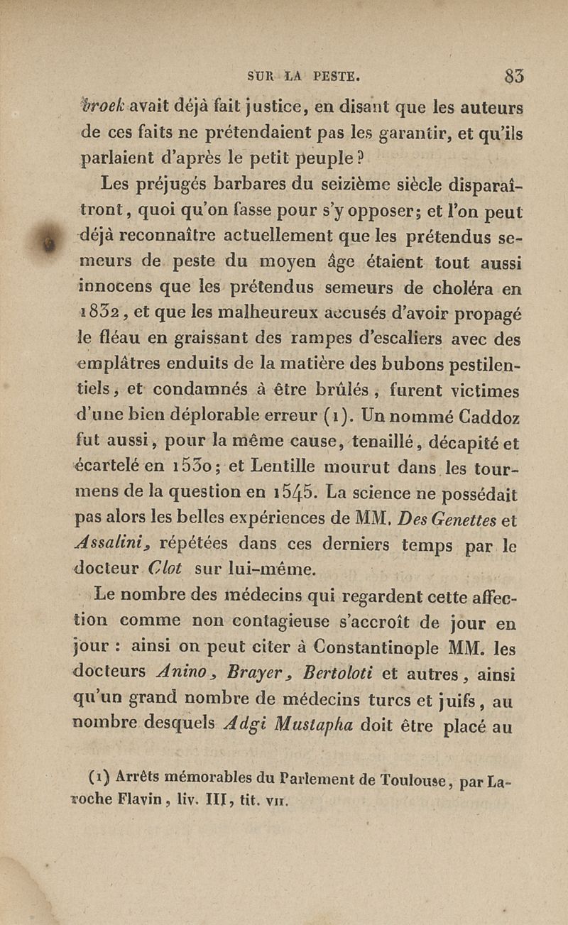 Mémoire sur la peste qui a régné épidémiquement à Constantinople en 1834 et sur sa non-contagion, suivi de quelques réflexions sur les quarantaines et les lazarets