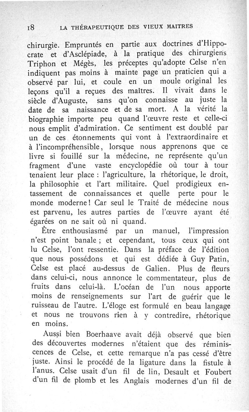 La thérapeutique des vieux maîtres