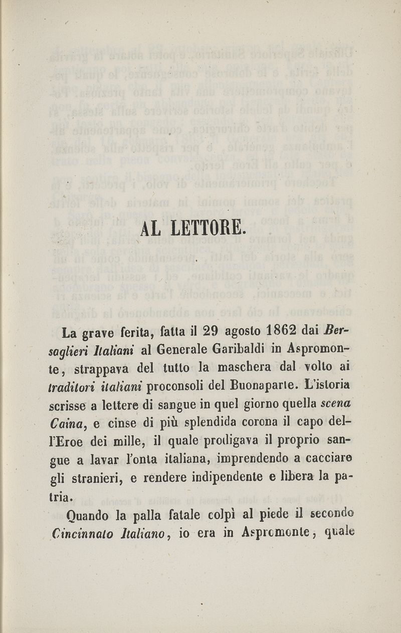 Storia della ferita del generale Garibaldi toccata il 29 agosto 1862 in Aspromonte