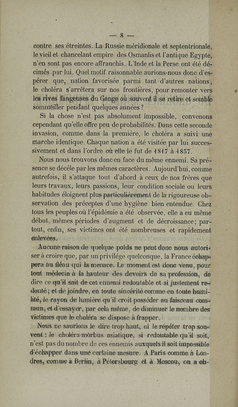 Du choléra-morbus épidémique. De son traitement préventif et curatif selon la méthode homoeopathique, rapport publié par la société hahnemannienne de Paris