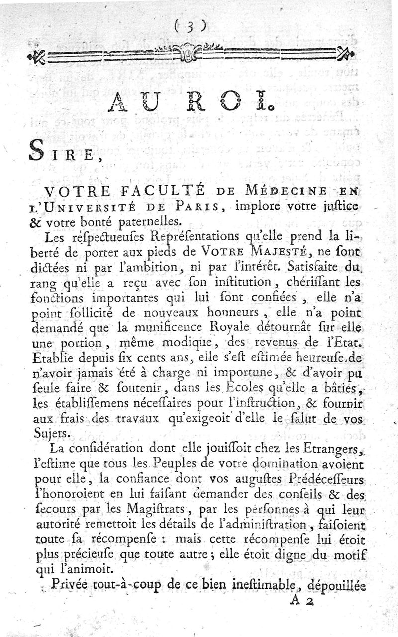Très humbles et très respectueuses représentations de la Faculté de médecine en l'Université de Paris, au Roi, contre la Société royale de médecine