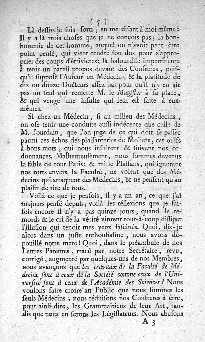 Lettre de M. Andry à M. Le Vacher de La Feutrie, doyen de la Faculté de médecine de Paris