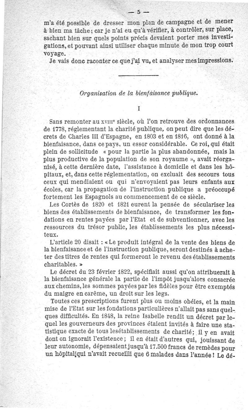 Une Mission en Espagne, L'Hygiène et l'assistance publique