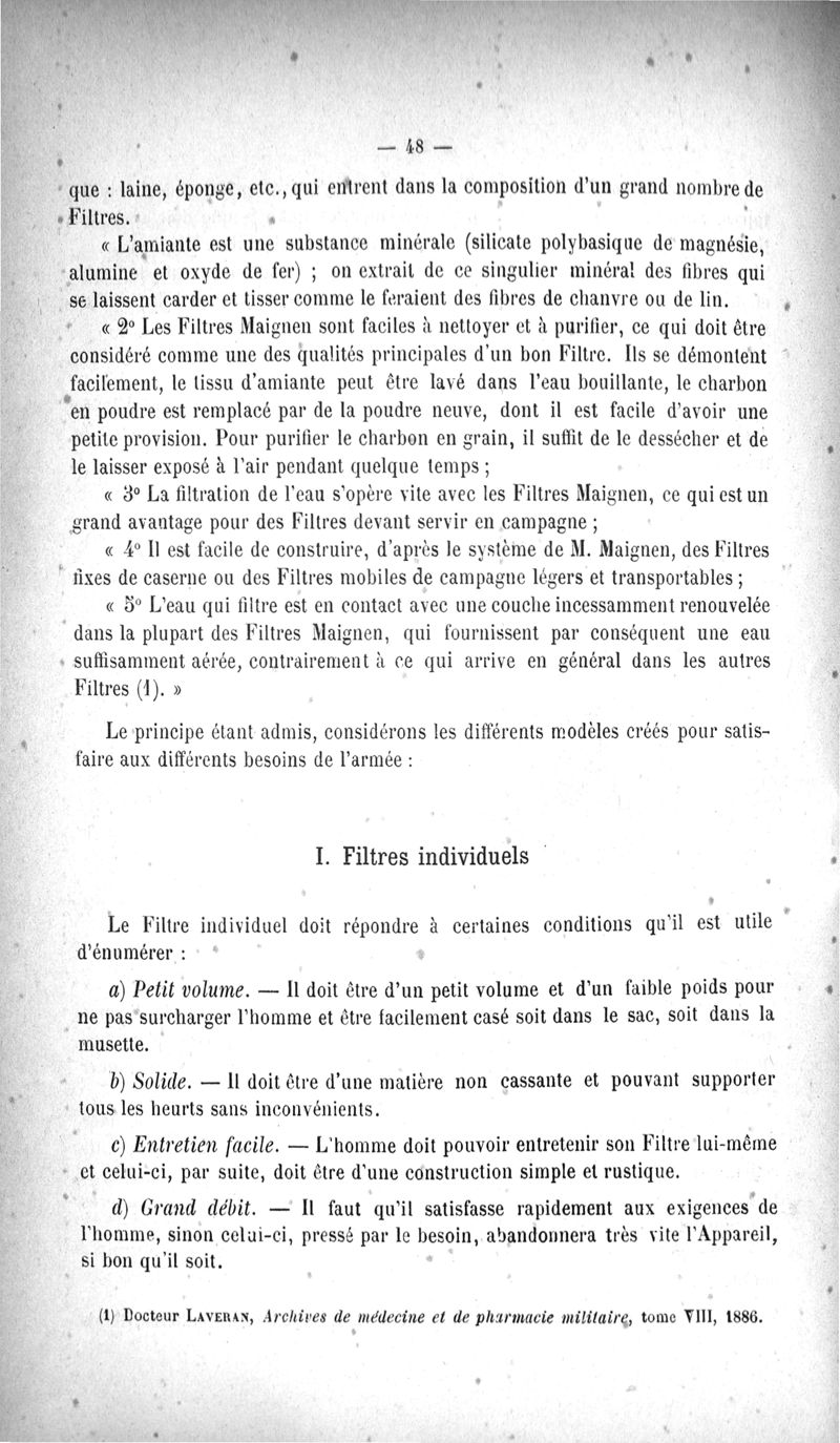 L'Eau purifiée par le filtrage, la question des filtres, le filtre Maignen, les autres filtres, expériences bactériologiques, pollution de l'eau dans les conduites