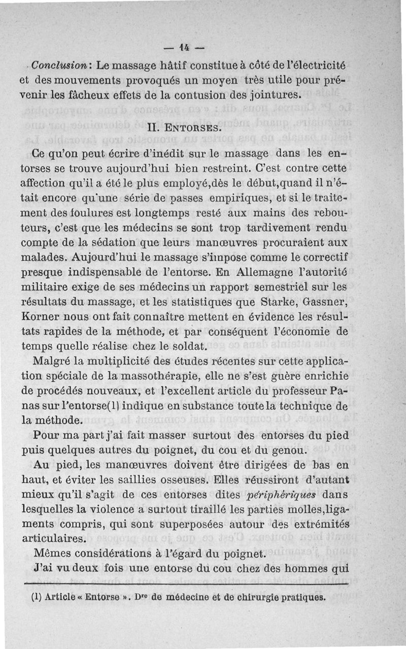 Etude clinique et expérimentale sur le massage