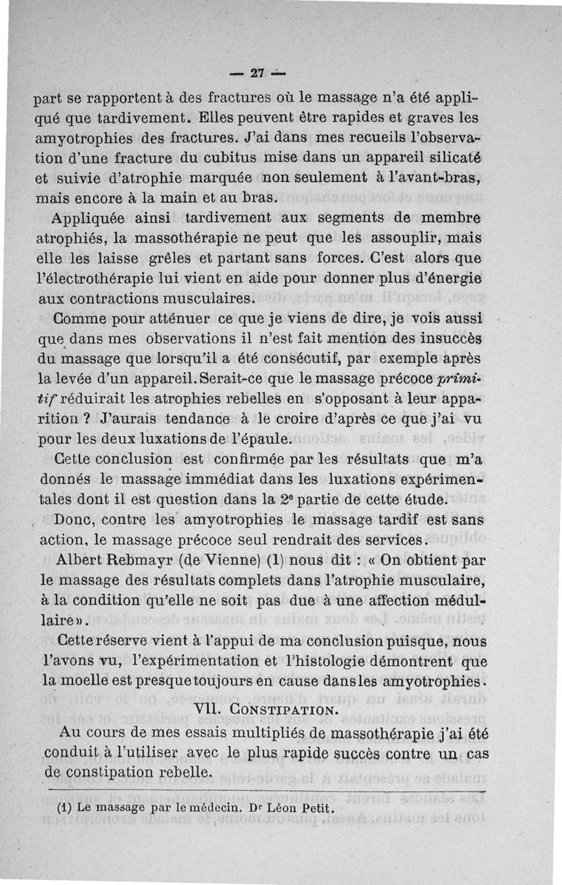 Etude clinique et expérimentale sur le massage