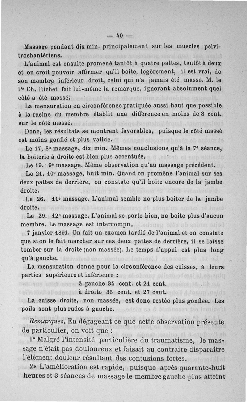 Etude clinique et expérimentale sur le massage