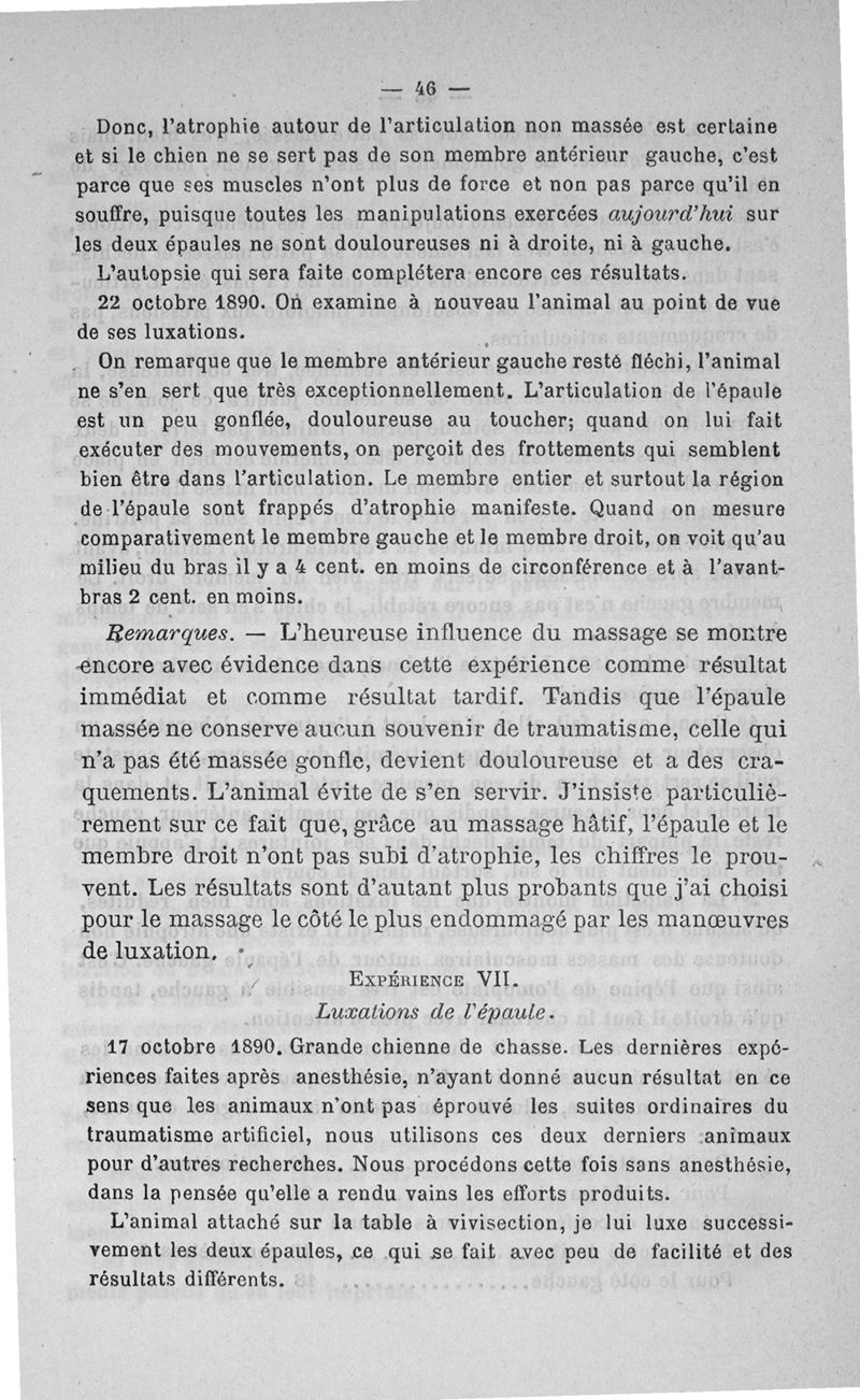 Etude clinique et expérimentale sur le massage