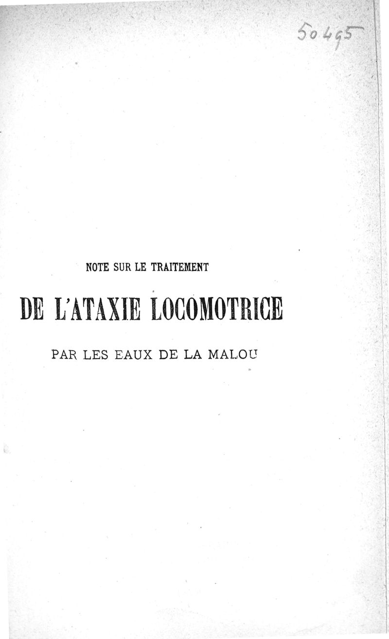 Note sur le traitement de l'ataxie locomotrice par les eaux de La Malou