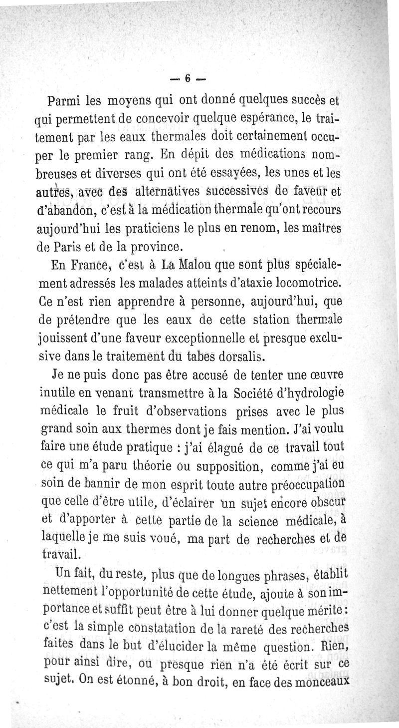 Note sur le traitement de l'ataxie locomotrice par les eaux de La Malou