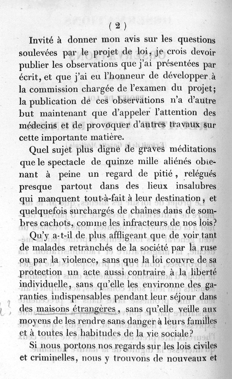 Observations sur le projet de loi relatif aux aliénés