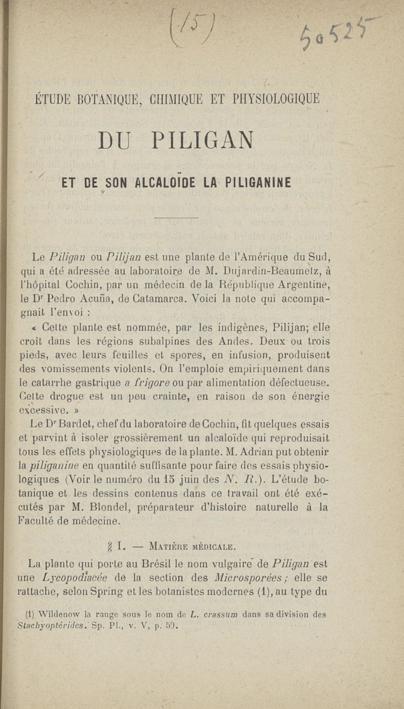 Etude botanique... du piligan et de son alcaloïde la piliganine