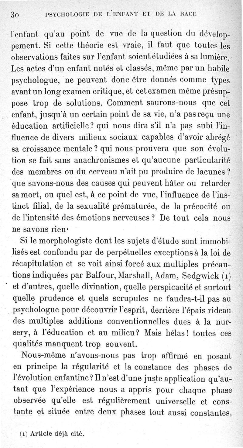 Le développement mental chez l'enfant et dans la race