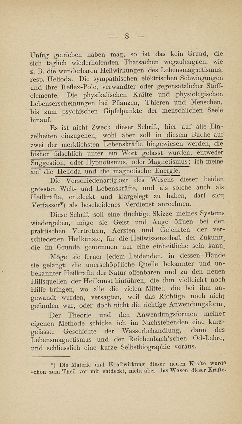 Die neueste Heilwissenschaft oder die psycho-physiologische Naturheilkunde die Entdeckung der Helioda und magnetischen Energie als polare Lebenskräfte und eine hierauf gegründete neue Heilwissenschaft in Verbindung mit der gesammten combinirten Naturheilmethode Bio-Chemie und Chirurgie ; nebst ausführlichen Berichten über längst aufgegebene Kranke, die durch diese Methode in kurzer Zeit gebessert oder geheilt wurden