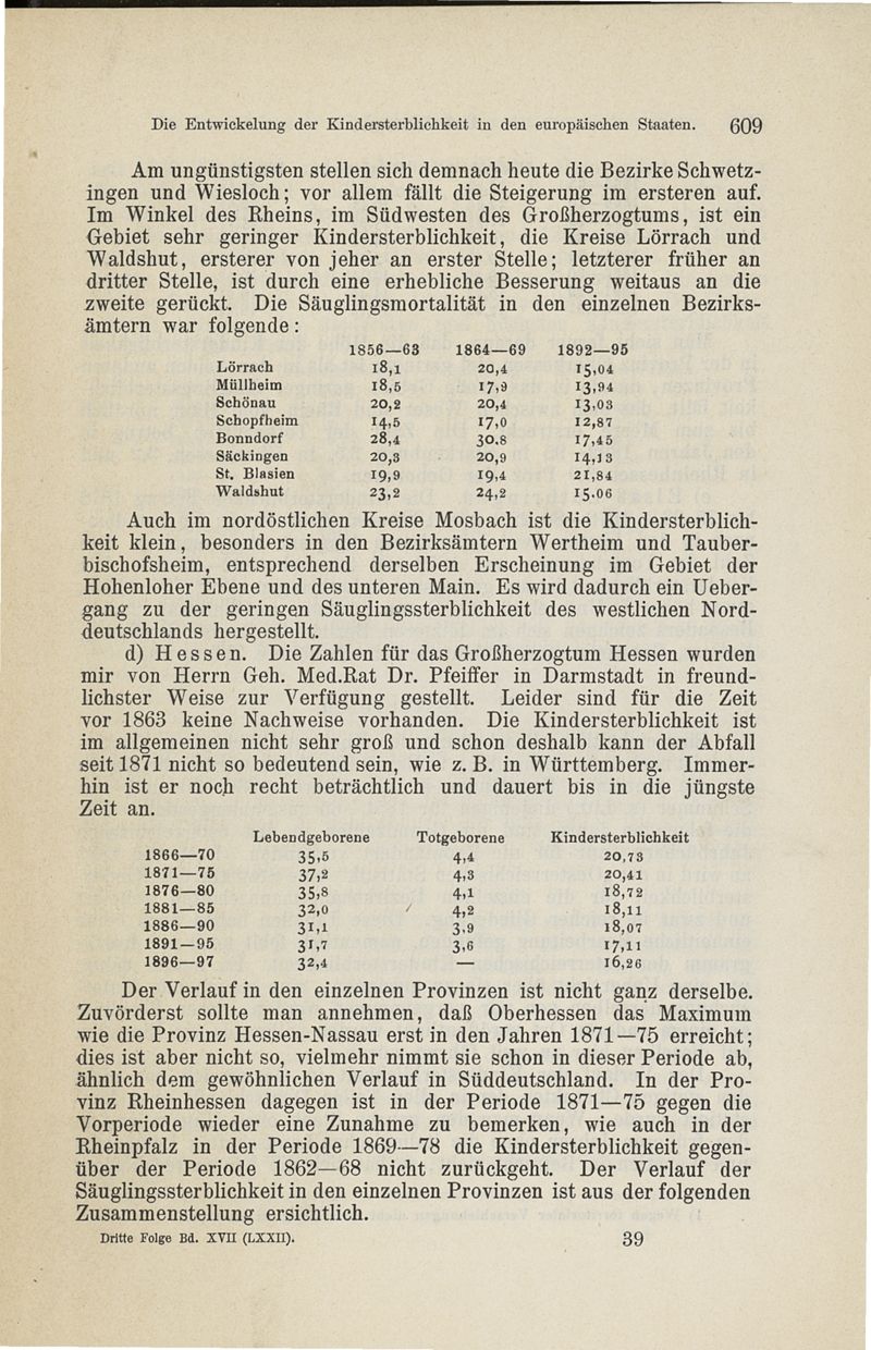 Die Entwickelung der Kindersterblichkeit in den europäischen Staaten
