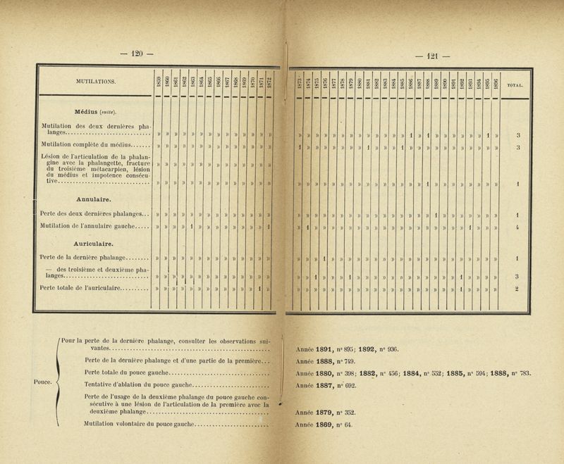 Recherches sur les maladies simulées et mutilations volontaires observées de 1859 à 1896 : chez les jeunes gens, conscrits ou militaires en activité de service envoyées à la 2e compagnie de pionniers jusqu'en 1875 et, depuis cette époque, à la 4e compagnie de discipline