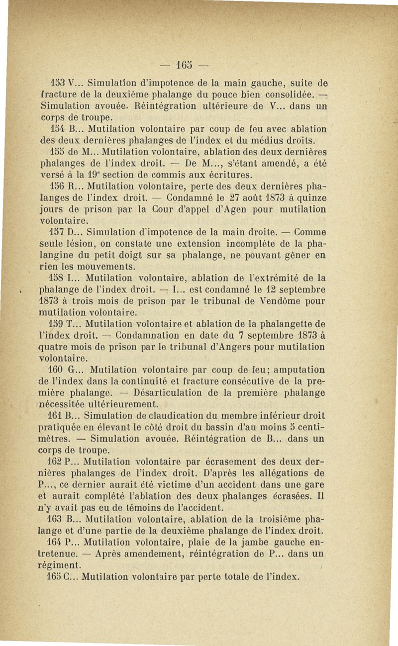 Recherches sur les maladies simulées et mutilations volontaires observées de 1859 à 1896 : chez les jeunes gens, conscrits ou militaires en activité de service envoyées à la 2e compagnie de pionniers jusqu'en 1875 et, depuis cette époque, à la 4e compagnie de discipline