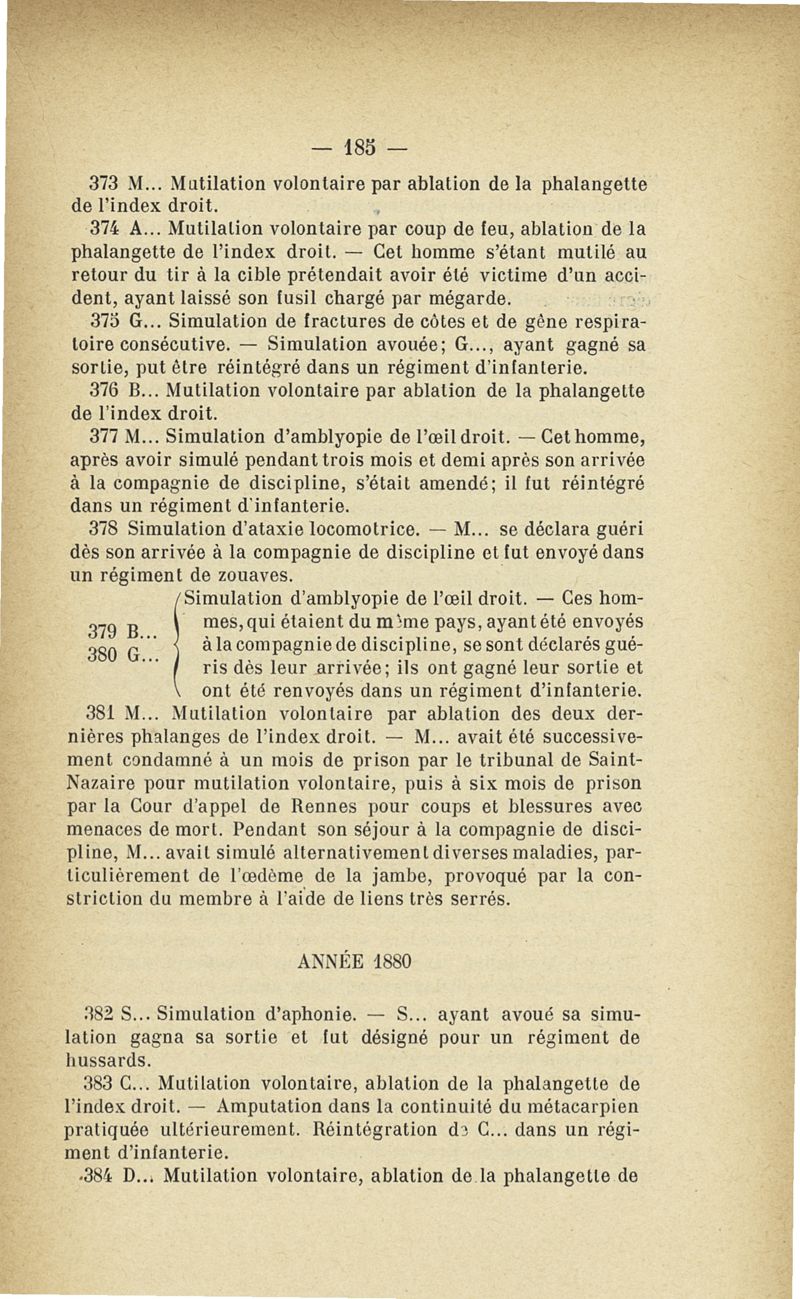 Recherches sur les maladies simulées et mutilations volontaires observées de 1859 à 1896 : chez les jeunes gens, conscrits ou militaires en activité de service envoyées à la 2e compagnie de pionniers jusqu'en 1875 et, depuis cette époque, à la 4e compagnie de discipline