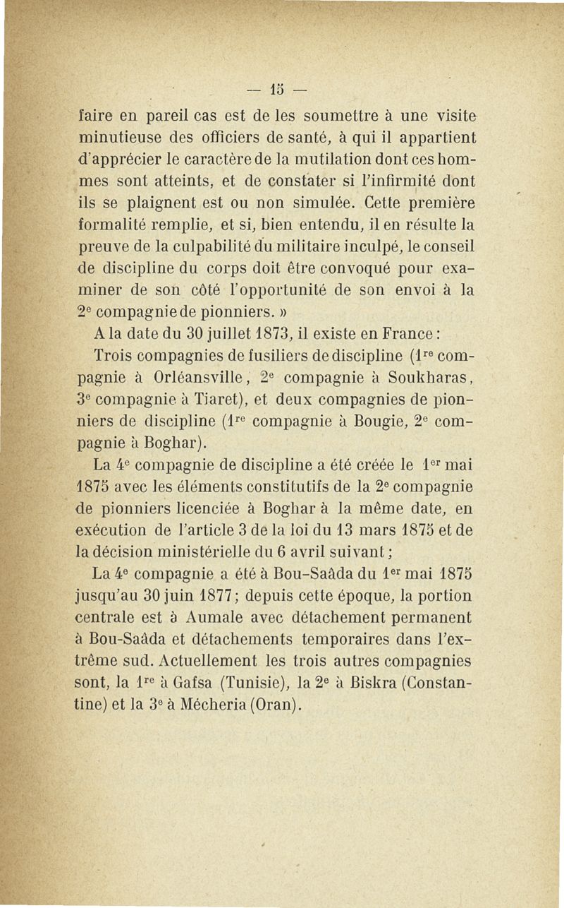 Recherches sur les maladies simulées et mutilations volontaires observées de 1859 à 1896 : chez les jeunes gens, conscrits ou militaires en activité de service envoyées à la 2e compagnie de pionniers jusqu'en 1875 et, depuis cette époque, à la 4e compagnie de discipline