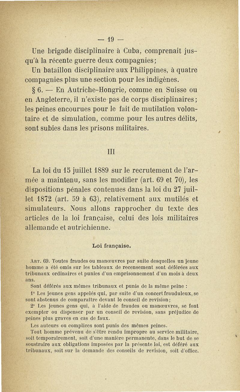 Recherches sur les maladies simulées et mutilations volontaires observées de 1859 à 1896 : chez les jeunes gens, conscrits ou militaires en activité de service envoyées à la 2e compagnie de pionniers jusqu'en 1875 et, depuis cette époque, à la 4e compagnie de discipline