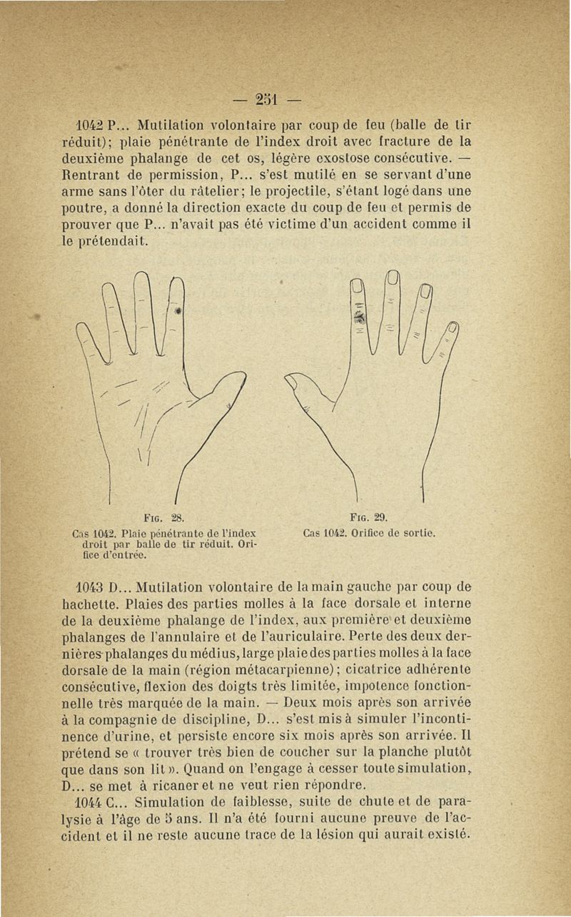 Recherches sur les maladies simulées et mutilations volontaires observées de 1859 à 1896 : chez les jeunes gens, conscrits ou militaires en activité de service envoyées à la 2e compagnie de pionniers jusqu'en 1875 et, depuis cette époque, à la 4e compagnie de discipline