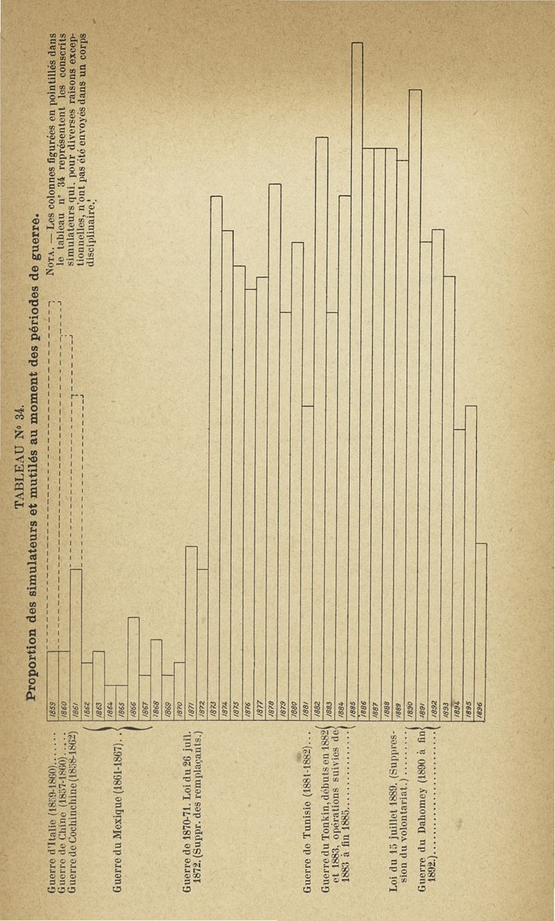 Recherches sur les maladies simulées et mutilations volontaires observées de 1859 à 1896 : chez les jeunes gens, conscrits ou militaires en activité de service envoyées à la 2e compagnie de pionniers jusqu'en 1875 et, depuis cette époque, à la 4e compagnie de discipline