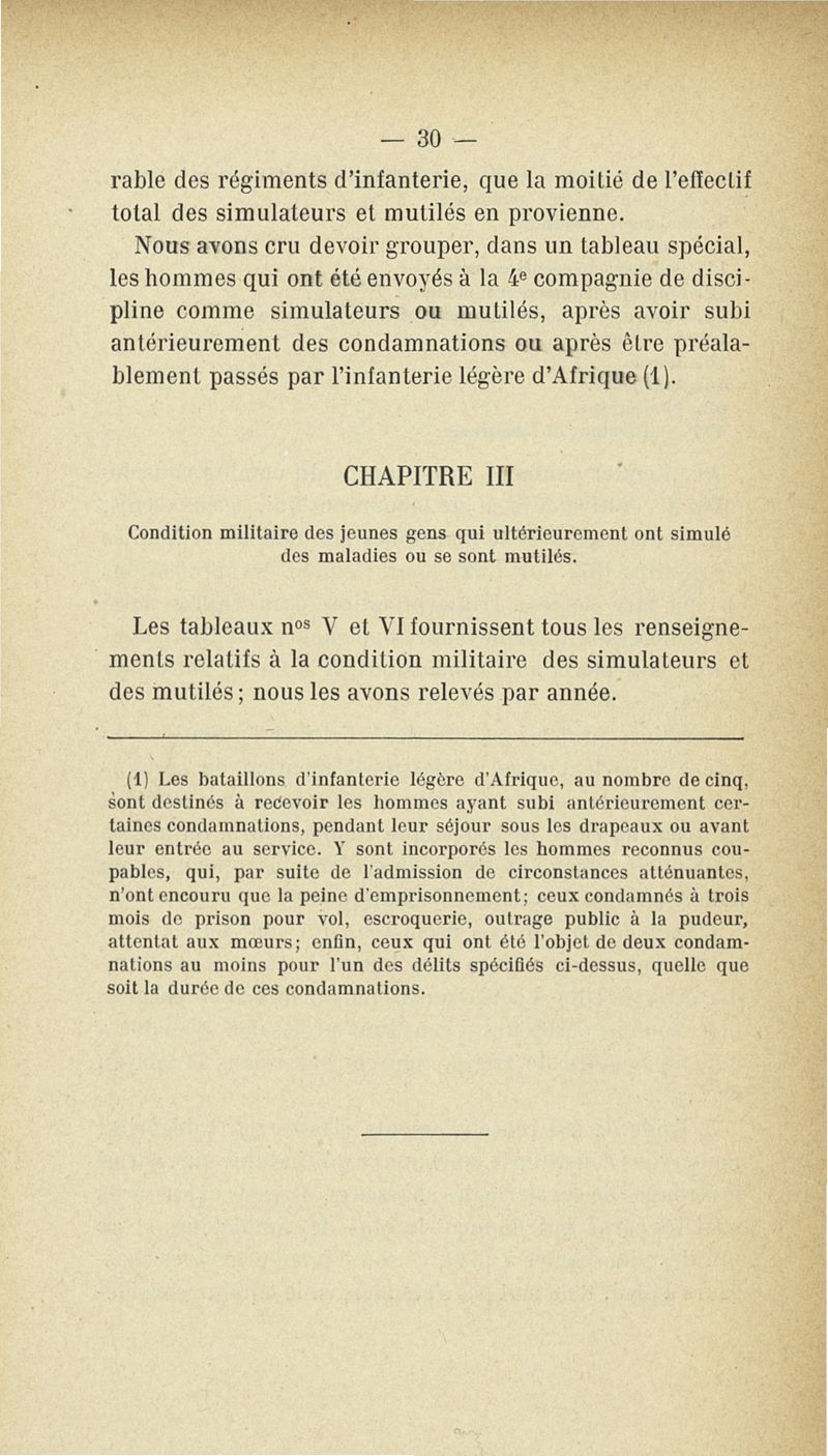 Recherches sur les maladies simulées et mutilations volontaires observées de 1859 à 1896 : chez les jeunes gens, conscrits ou militaires en activité de service envoyées à la 2e compagnie de pionniers jusqu'en 1875 et, depuis cette époque, à la 4e compagnie de discipline