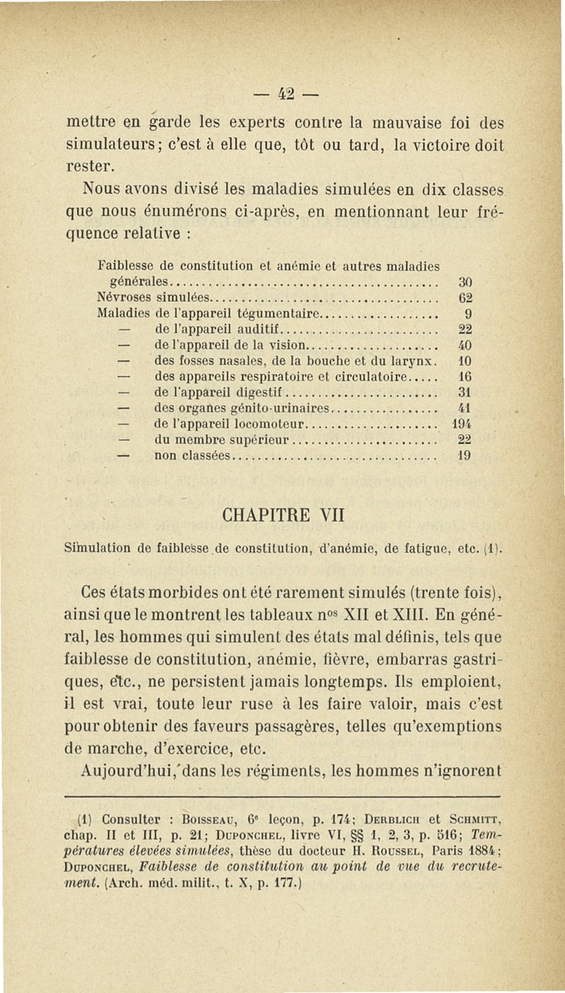 Recherches sur les maladies simulées et mutilations volontaires observées de 1859 à 1896 : chez les jeunes gens, conscrits ou militaires en activité de service envoyées à la 2e compagnie de pionniers jusqu'en 1875 et, depuis cette époque, à la 4e compagnie de discipline