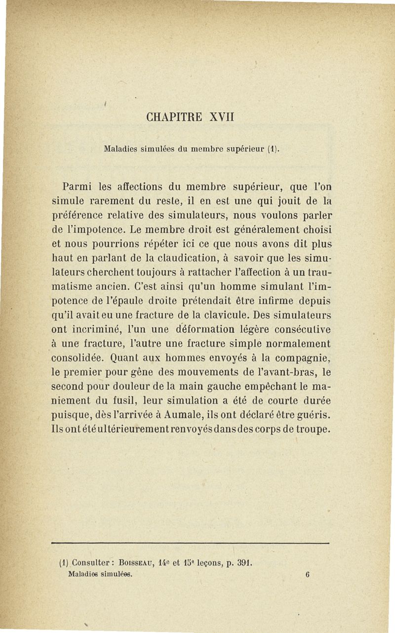 Recherches sur les maladies simulées et mutilations volontaires observées de 1859 à 1896 : chez les jeunes gens, conscrits ou militaires en activité de service envoyées à la 2e compagnie de pionniers jusqu'en 1875 et, depuis cette époque, à la 4e compagnie de discipline