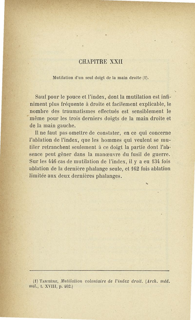Recherches sur les maladies simulées et mutilations volontaires observées de 1859 à 1896 : chez les jeunes gens, conscrits ou militaires en activité de service envoyées à la 2e compagnie de pionniers jusqu'en 1875 et, depuis cette époque, à la 4e compagnie de discipline