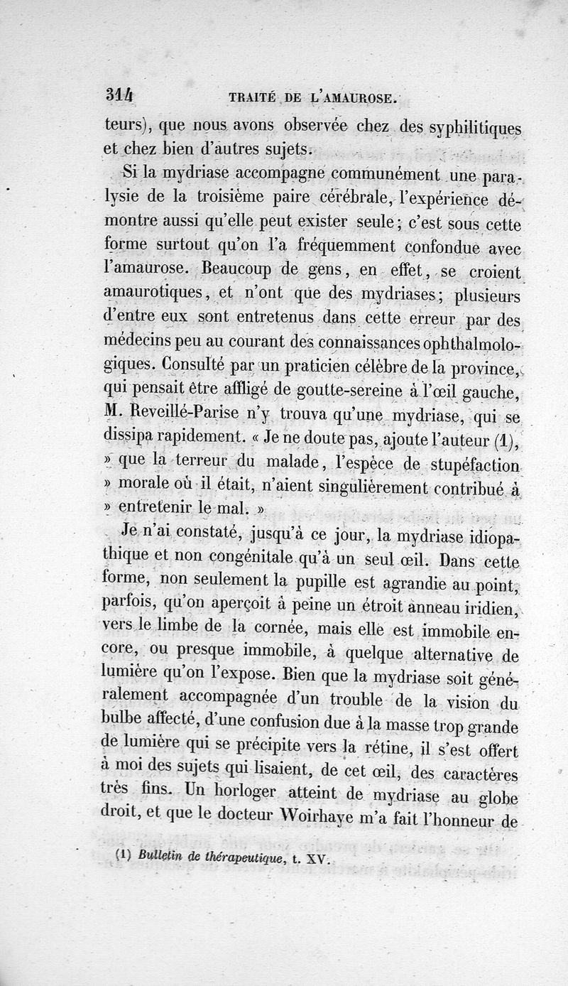Traité de l'amaurose ou de la goutte-sereine. Ouvrage contenant des faits nombreux de guérison de cette maladie, dans des cas de cécité complète.
